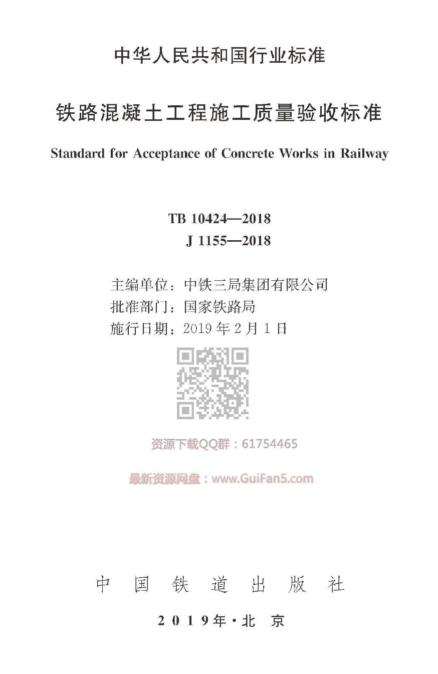正版 TB 10424-2018 鐵路混凝土工程施工質(zhì)量驗收標(biāo)準(zhǔn)(高清版)