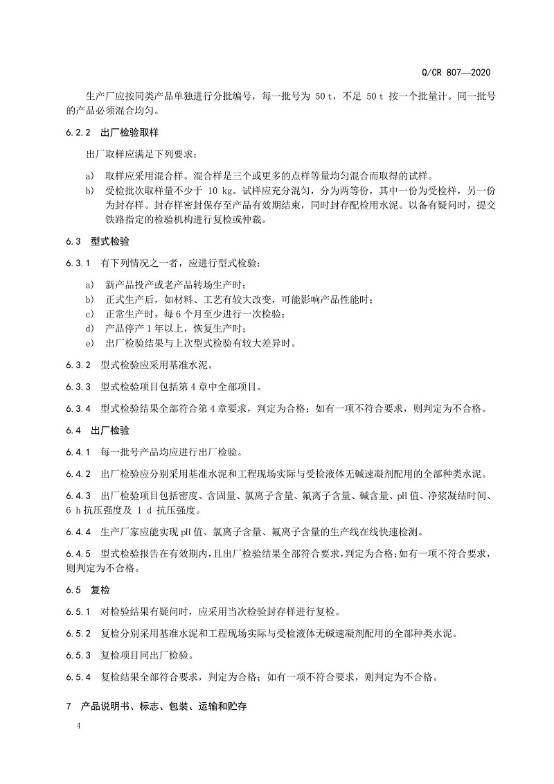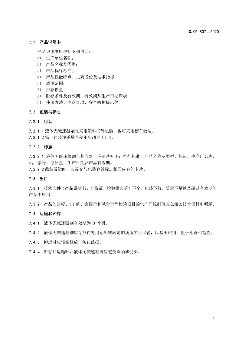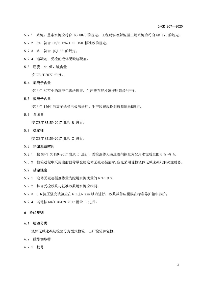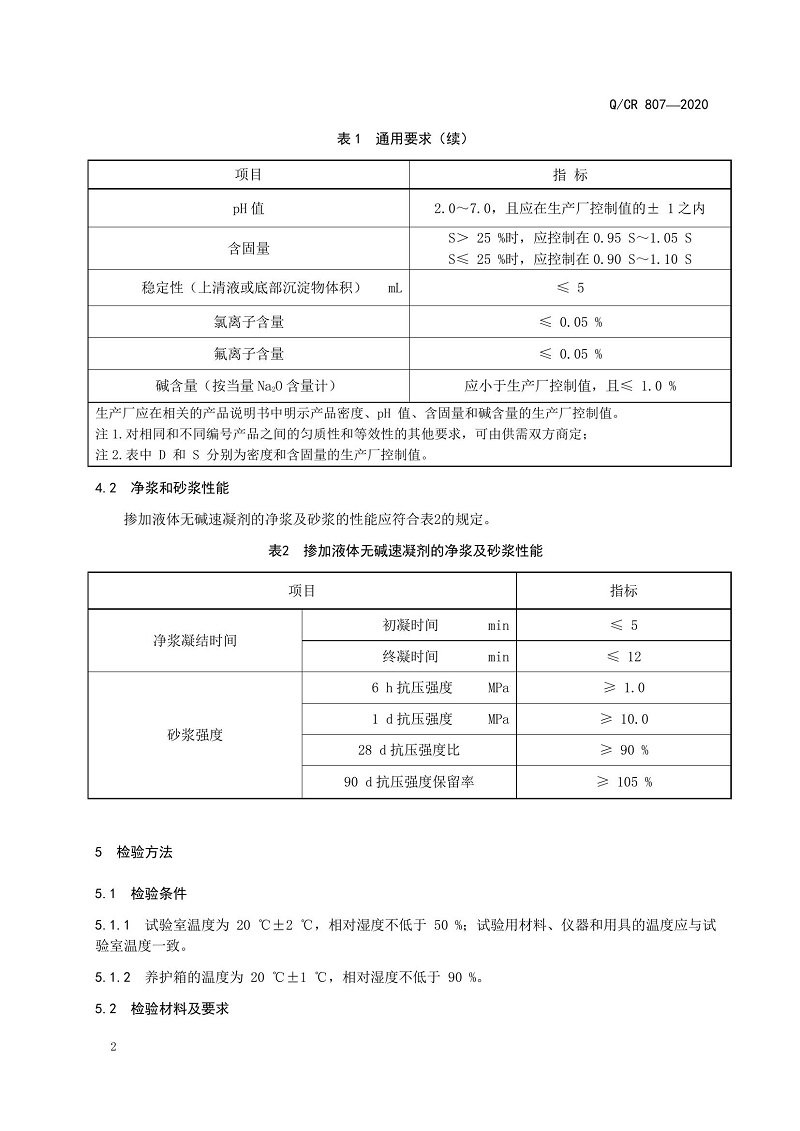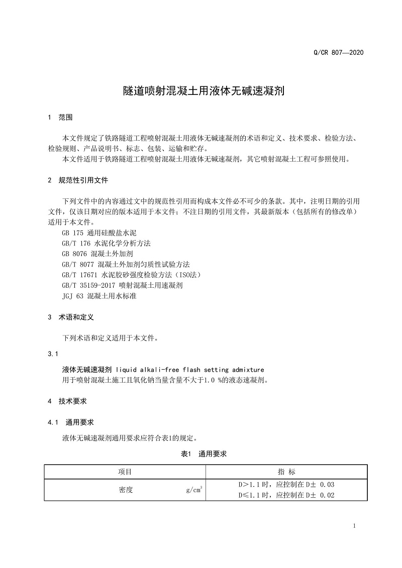 QCR 807-2020國鐵集團技術(shù)標(biāo)準(zhǔn)《隧道噴射混凝土用液體無堿速凝劑》